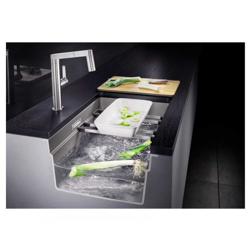 Вместительная ступенчатая мойка с функциональностью моечного центра