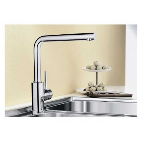 Хромированный сместель Blanco Mila имеет практичную L-образную форму . Излив смесителя вращается на 360 градусов, что позволяет направить поток воды в наиболее удобное место. Так же Blanco Mila оснащен запатентованным рассекателем воды для снижения отложений известкового налета, а качественно нанесенное хромированное покрытие обеспечит защиту от повреждений и украсит интерьер вашей кухни своим блеском.