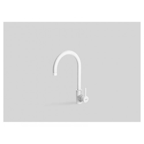 Описание Однорычажный смеситель для мойки с поворотным изливом. Диаметр выреза 35 мм Цвет белый