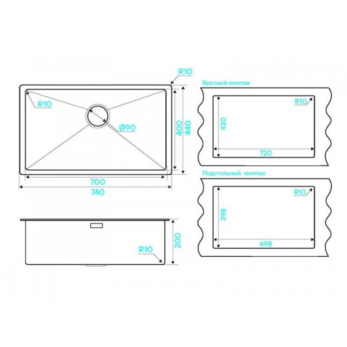 | Тип монтажа | монтаж сверху или под столешницу |