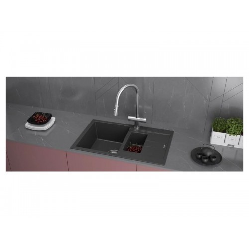 Мойки из α-Granit изготовлена из композитного материала последнего поколения. Они легко чистятся, гигиеничны и обладают высокой учтойчивостью к царапинам, химическим вещетвам, а также к температурам до 280грС и термическим ударам.