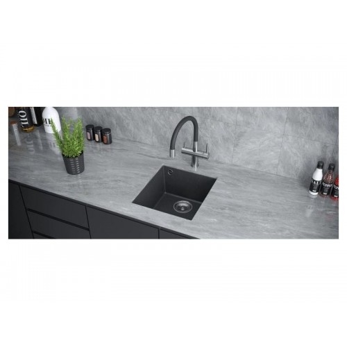 Мойки из α-Granit PMMA изготовлена из композитного материала последнего поколения. Они легко чистятся, гигиеничны и обладают высокой учтойчивостью к царапинам, химическим вещетвам, а также к температурам до 280грС и термическим ударам.
