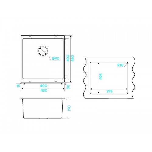 Размер мойки - 430х460х190мм