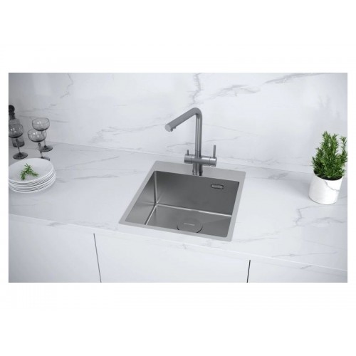 Мойка изготовлена из нержавеющей стали, обладающей высокой коррозийной стойкостью, большим запасом механической прочности, а также устойчивостью к воздействию кислот и других химически активных соединений.