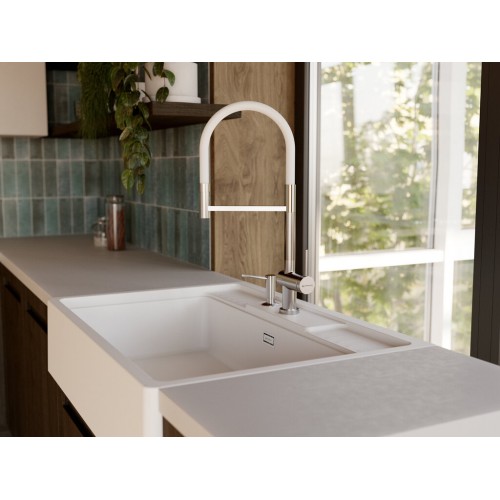 Необычное дизайнерское решение - сочетание гибкого шланга и подачи фильтрованной воды.