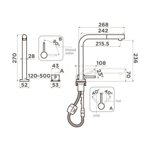 Новая удобная технология системы ручки 2 в 1 Multi позволяет переключить с водопроводной на фильтрованную воду в одно касание.