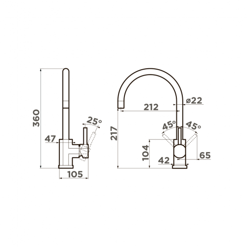 Современный дизайн и удобство использования благодаря высокому изливу.