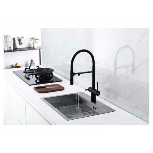 Функция 2 в 1 позволяет подключать к смесителю фильтр для очистки воды без дополнительного отверстия в мойке для подачи фильтрованной воды.