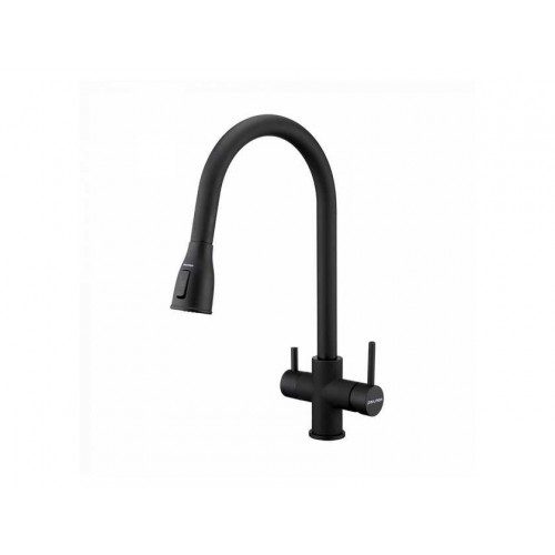 Конструкция смесителя с вытяжным шлангом значительно облегчает процесс мойки посуды или продуктов любого размера и формы.