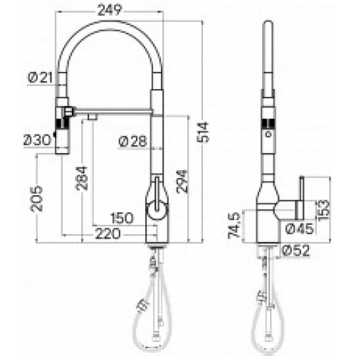 Смеситель для кухни MAGNETO ONE с гибким силиконовым изливом и возможностью подключения системы фильтрации питьевой воды